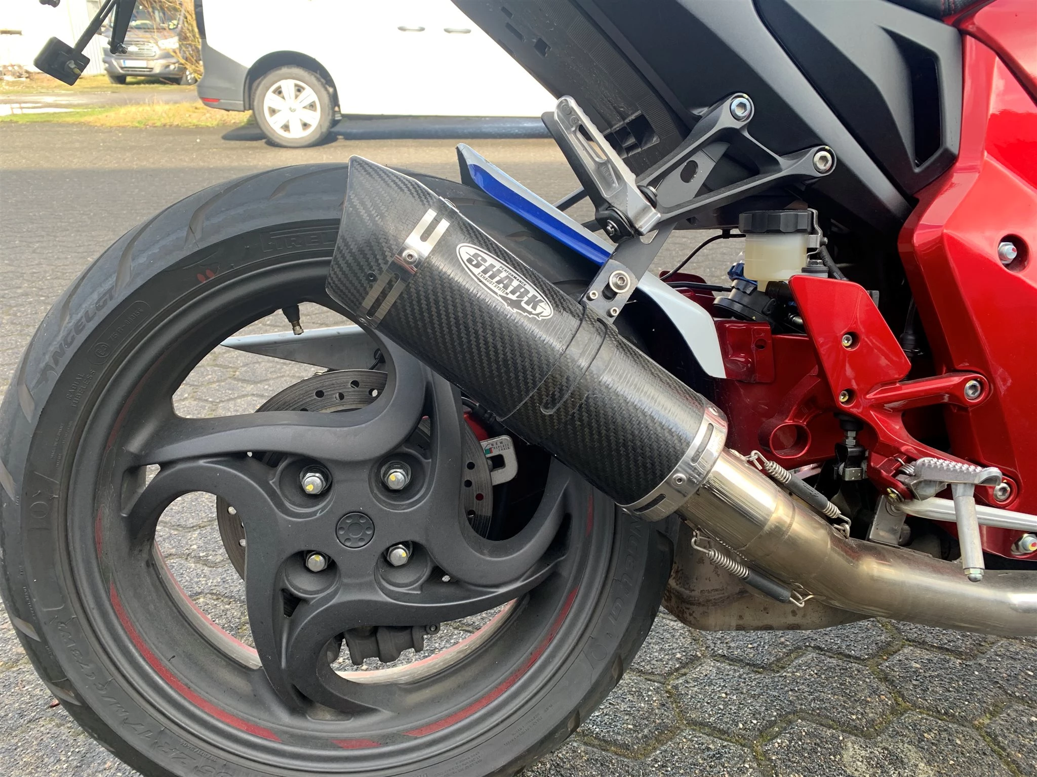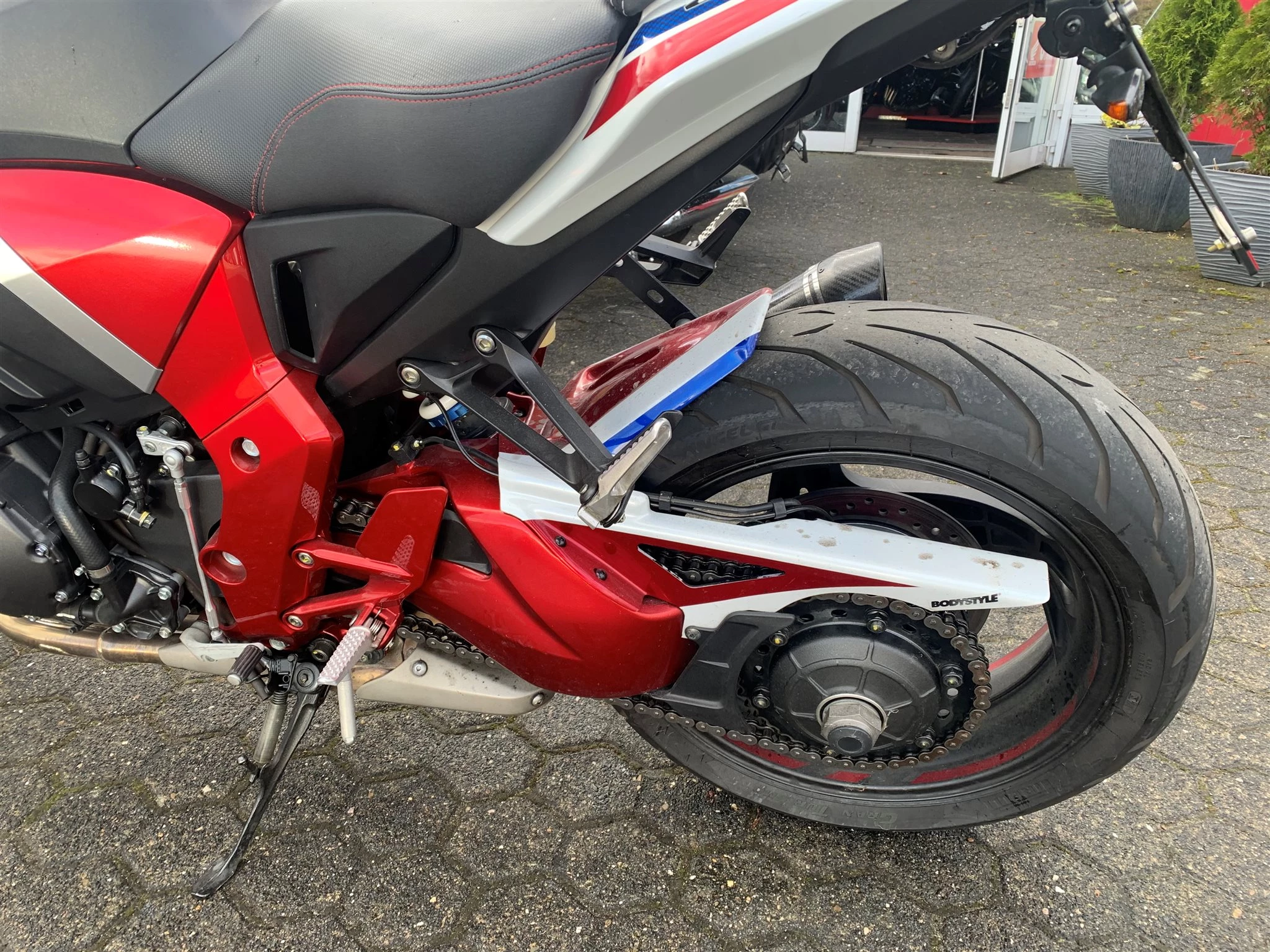 Heckumbau,Hinterradabdeckung,Auspuff und Sitzbank sind als Zubehör montiert
